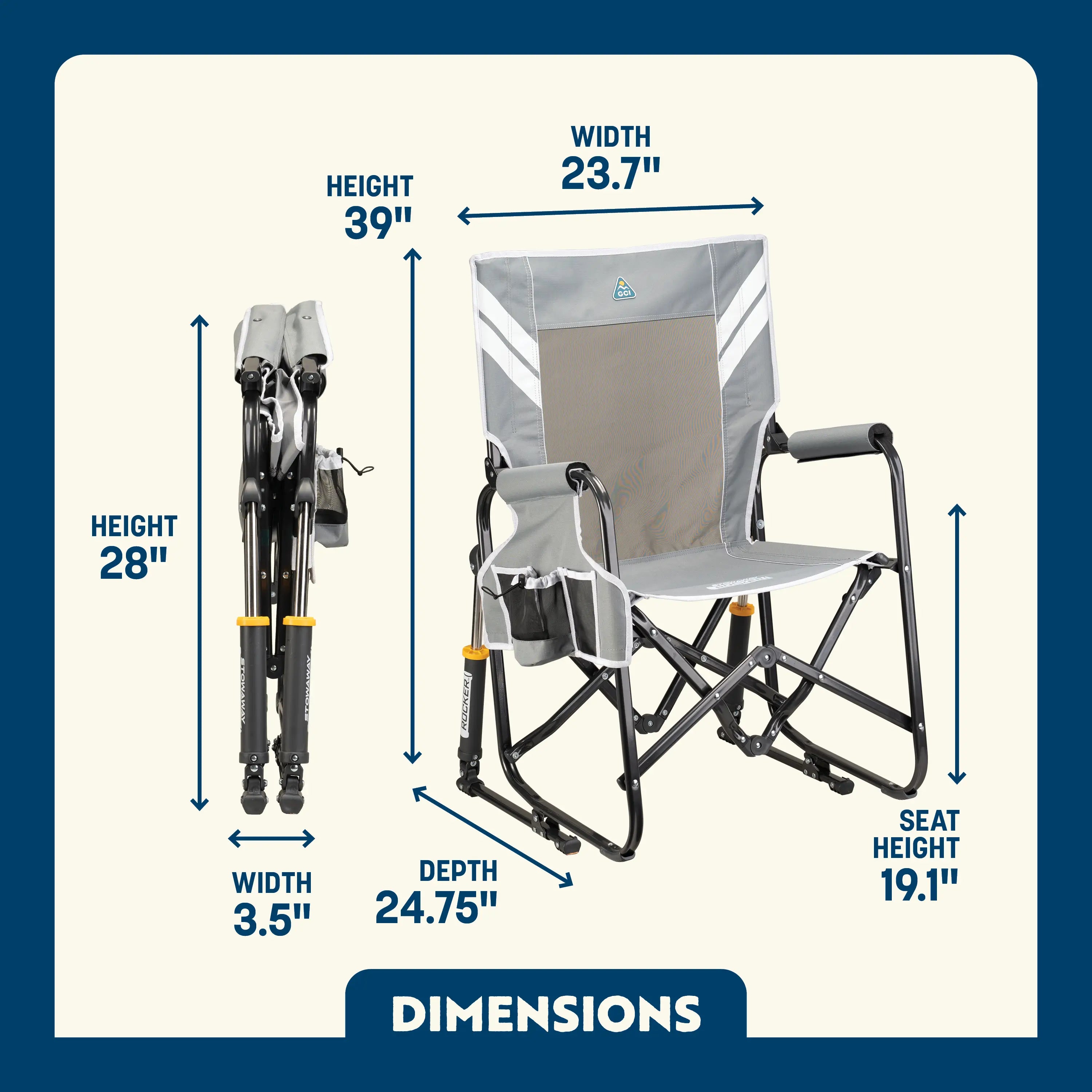 GCI Outdoor has revolutionized outdoor seating with the space-saving Stowaway Rocker—a portable rocking chair that features elevated comfort designed to go wherever you go. When folded, it’s 35% more compact than the standard Rocker, leaving more room for your outdoor gear.